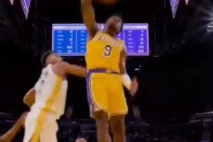 篮球NBA湖人詹姆斯布朗尼 体育资讯10月6日讯 NBA季前赛,湖人以103-111不敌勇士。在本场比赛中,布朗尼上演了单臂补扣,赛后,詹姆斯也在INS转发了这段视频。GIF-布朗尼单臂补扣 场边的詹姆斯都站起来了